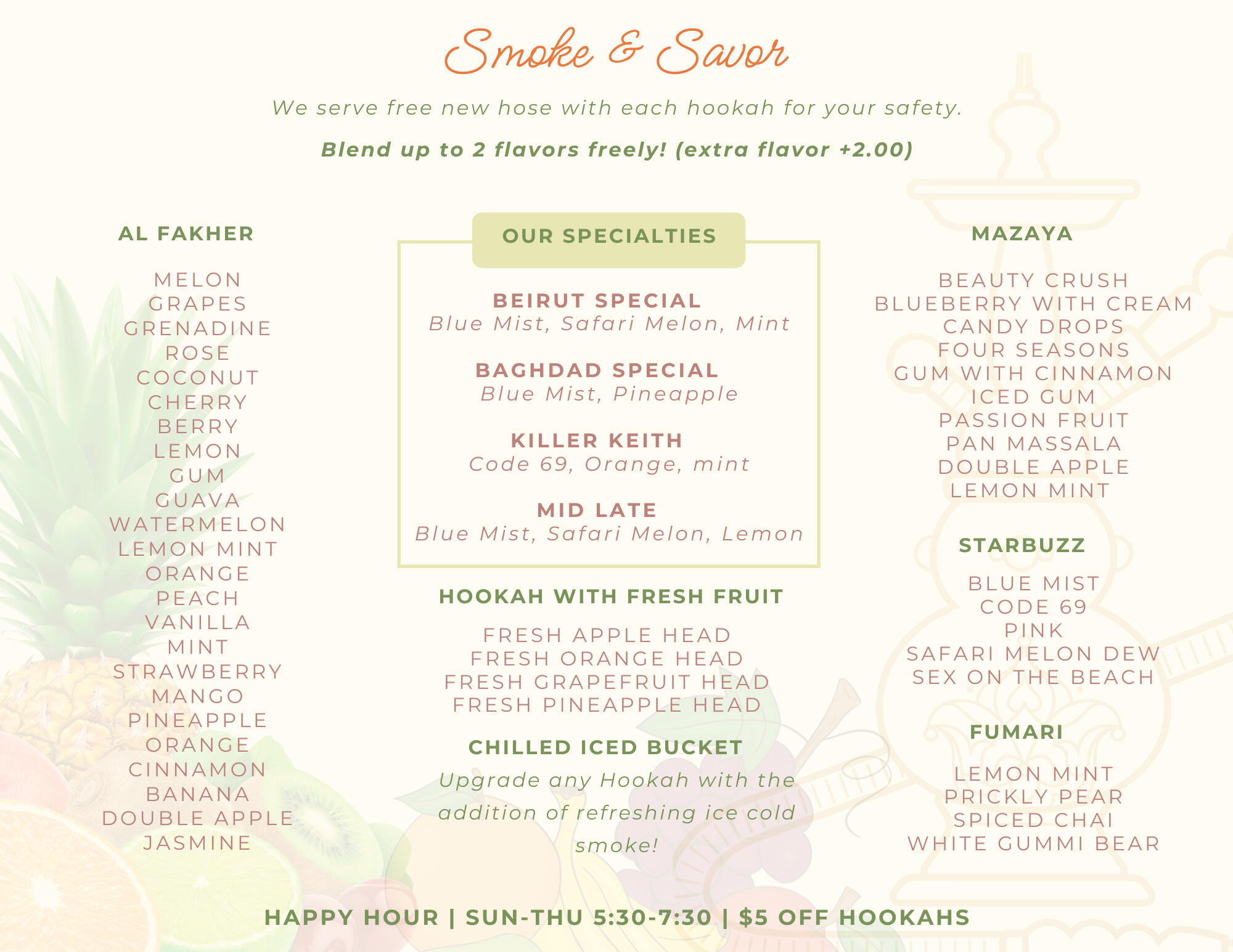 Experience the best hookah lounge in Tempe, Arizona. Newly remodeled and open since 2009! Each hookah is crafted with premium quality and a wide selection of flavors to suit every taste. Alongside our signature, freshly prepared healthy juices and authentic Lebanese desserts, you can also enjoy a full food menu provided by Mijana restaurant. Whether you’re here to relax with friends or savor a cozy evening, our lounge offers the perfect atmosphere to unwind, indulge and enjoy the best hookah in Arizona!